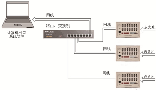 配備計算機網(wǎng)絡接口,能采用一臺計算機監(jiān)控256臺應變儀,能連臺式機和筆記本電腦。
